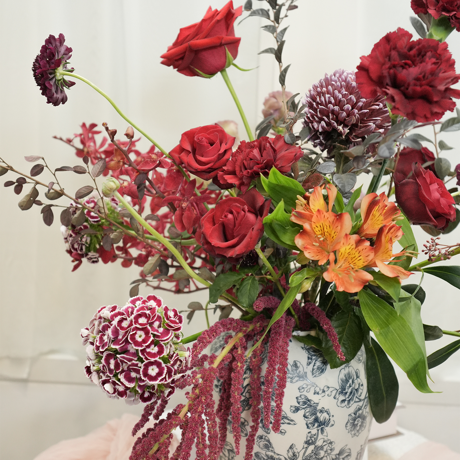 訂購 商品詳細資訊: 尺寸→ 約20x15cm(長寬) x 約30cm(高) 成分→ 新鮮花材、新鮮葉材、提籃、吸水海綿 虎頭蘭、綠石竹、松蟲、玫瑰、富貴菊、陸蓮 商品備註: 1.實際顏色已實品為主。 2.避免置放於陽光直射處、花材易枯萎。 3.作品 說明:花材會依季節性變動,或是花材品質欠佳,若遇臨時狀況發生, 請允許花藝設計師以其他色系或相同的花材做調整,或電洽設計師討論。
