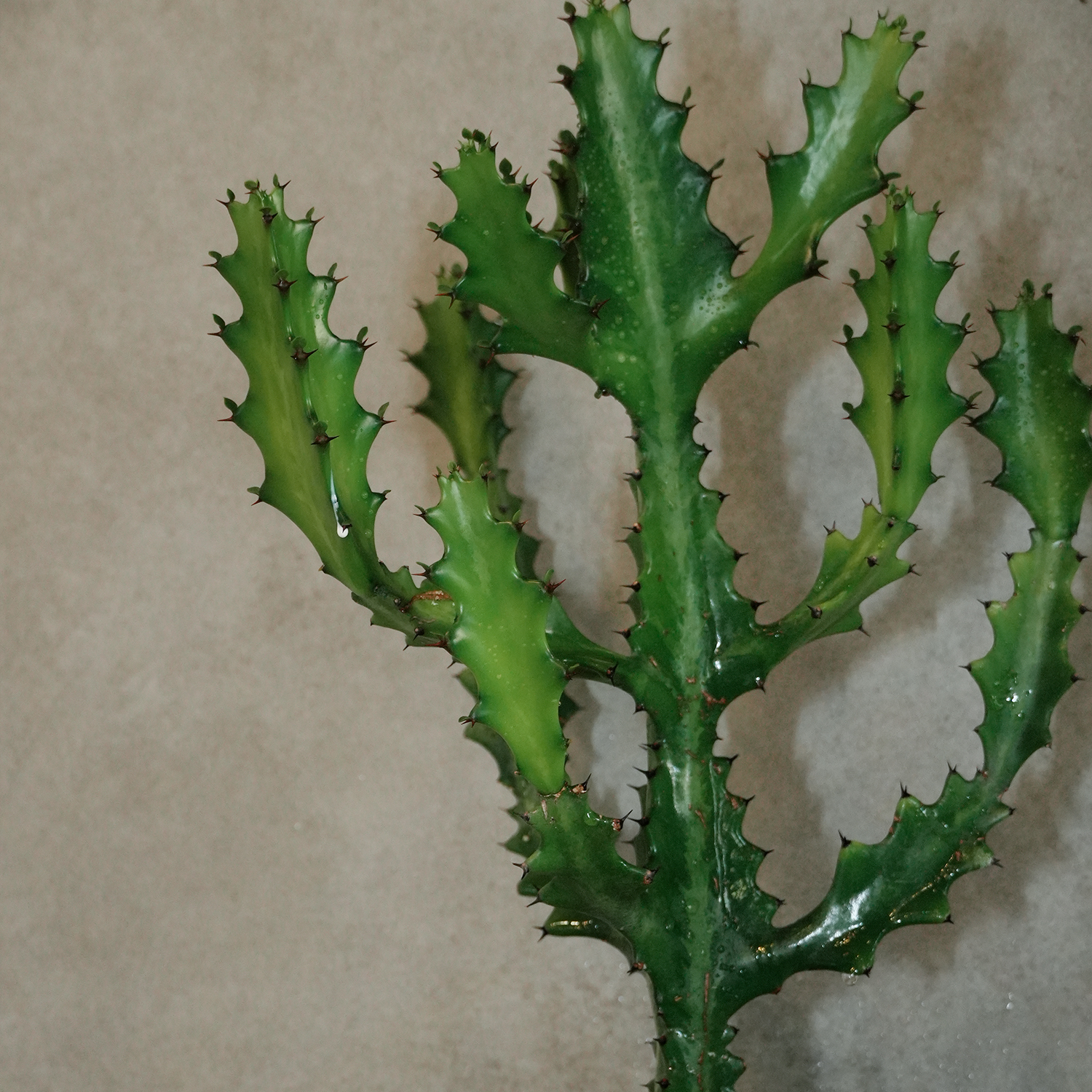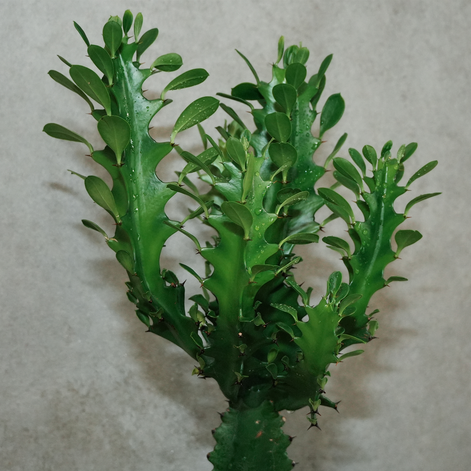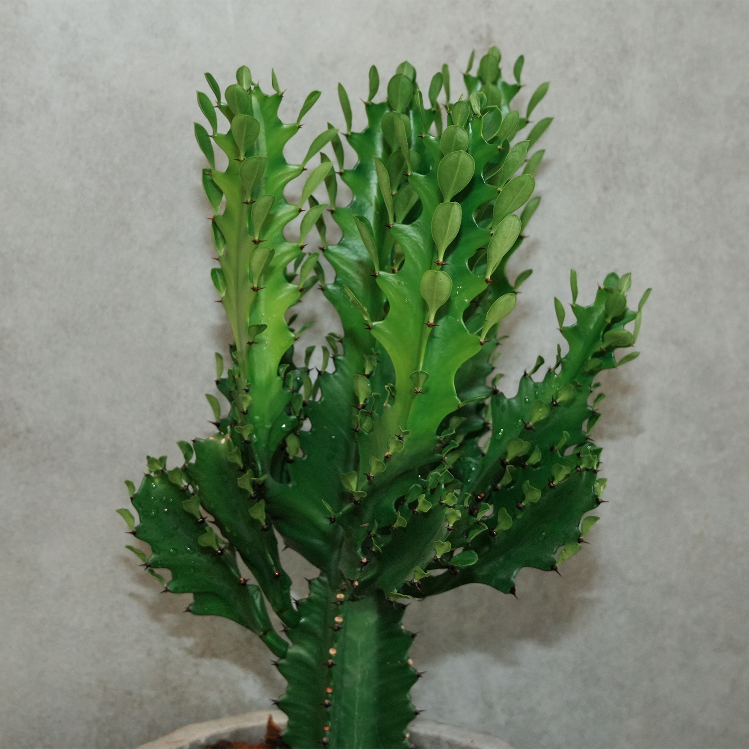學名:龍骨(學名:Euphorbia trigona)是常見的大戟科多肉植物,又稱三角霸王鞭或彩雲閣。其特徵為堅硬直立的三稜柱狀莖,帶有小刺,外型類似仙人掌但無葉片(成株通常),高可 達 2-4 公尺,適合全日照環境,耐旱且易於養護,常做為室內觀賞、盆栽或戶外庭院的綠色屏障。