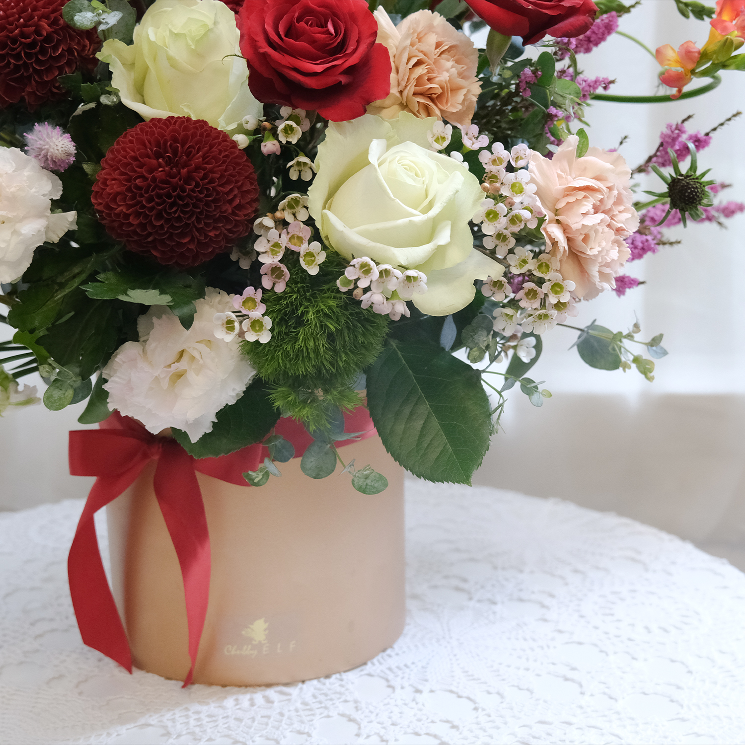 請允許花藝設計師以其他色系或相同的花材做調整,或電洽設計師討論。