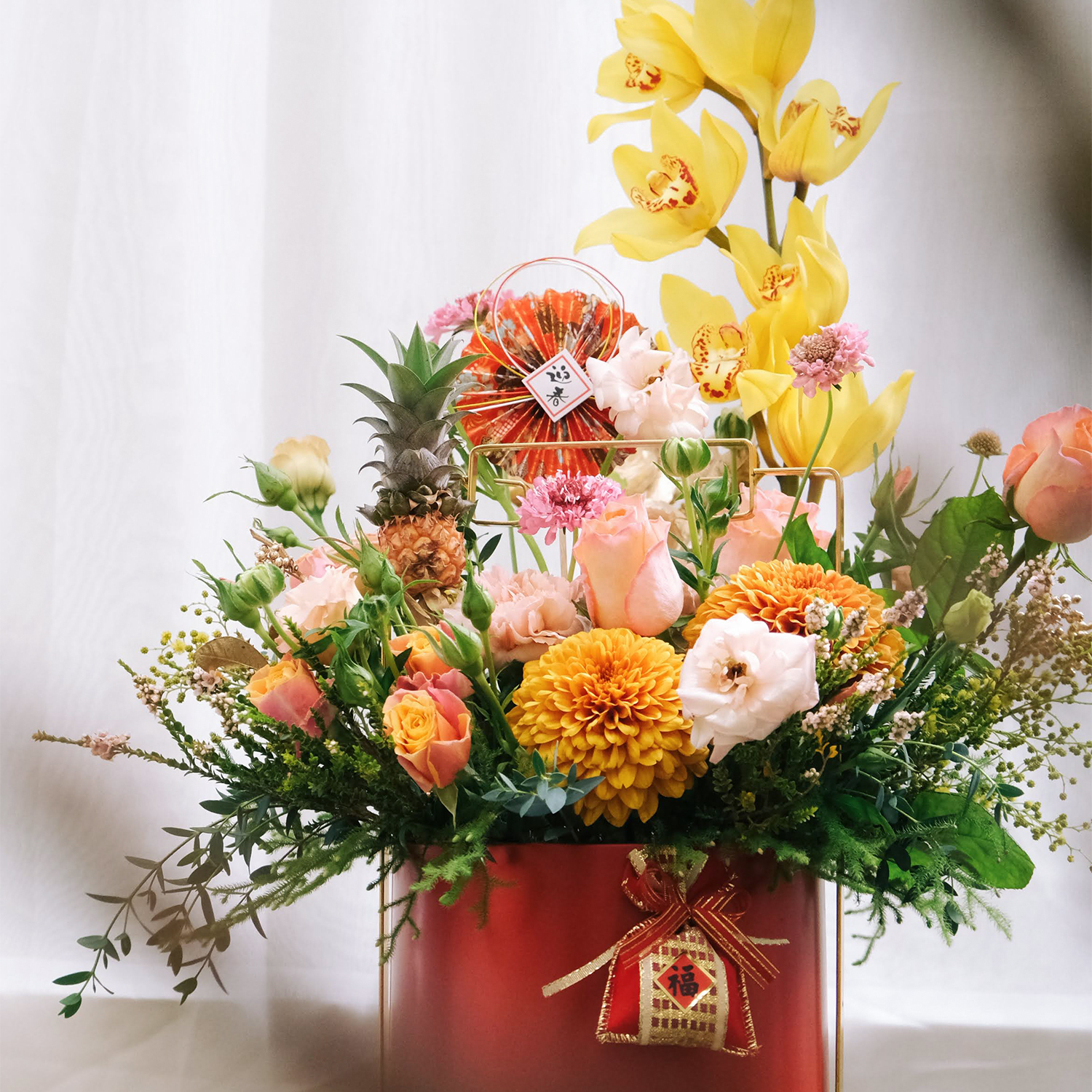 訂購 商品詳細資訊: 尺寸→ 約30x30cm(長寬) x 約50cm(高) 成分→ 新鮮花材、新鮮葉材、皮革提籃、吸水海綿 商品備註: 1.實際顏色已實品為主。 2.避免置放於陽光直射處、花材易枯萎。 3.作品 說明:花材會依季節性變動,或是花材品質欠佳,若遇臨時狀況發生, 請允許花藝設計師以其他色系或相同的花材做調整,或電洽設計師討論。