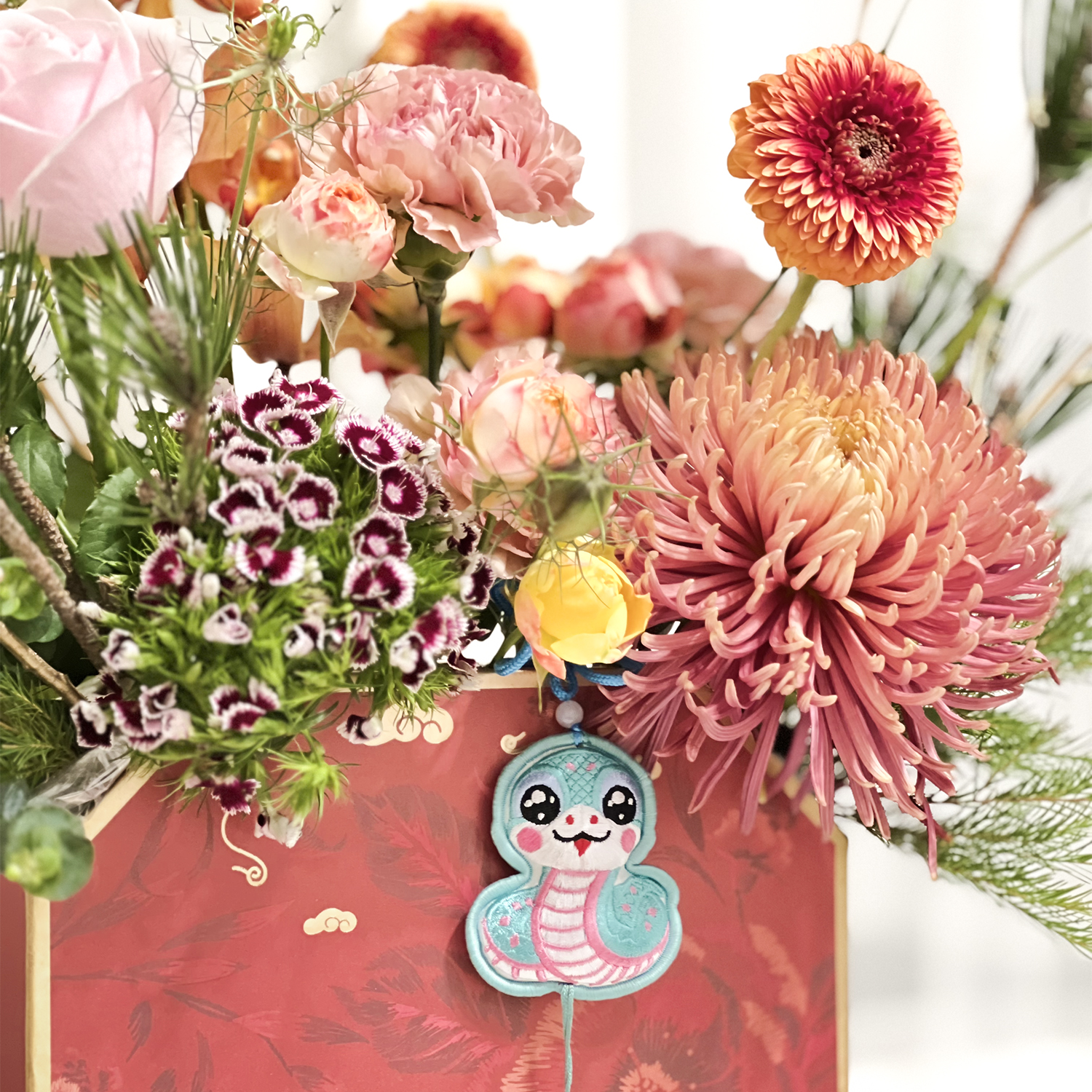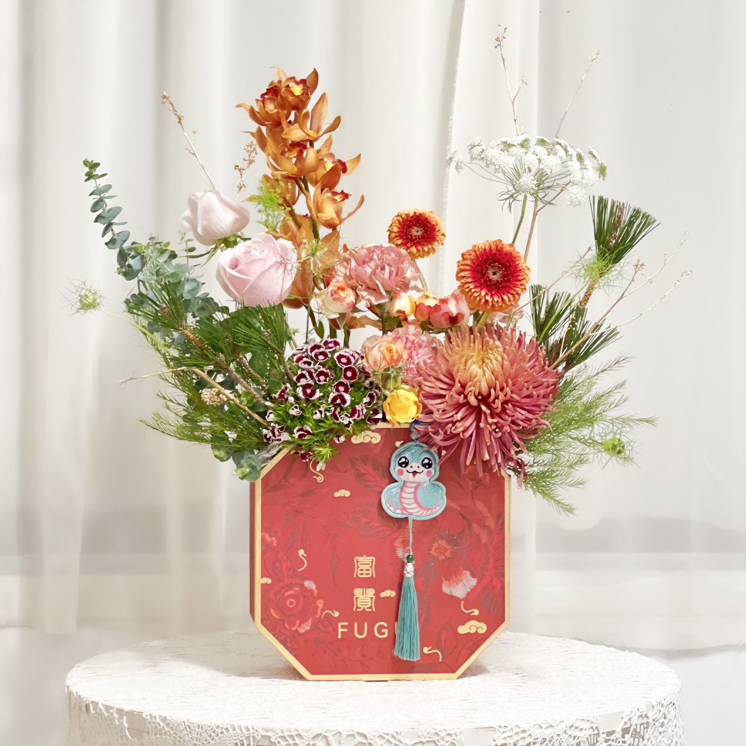 請允許花藝設計師以其他色系或相同的花材做調整,或電洽設計師討論。