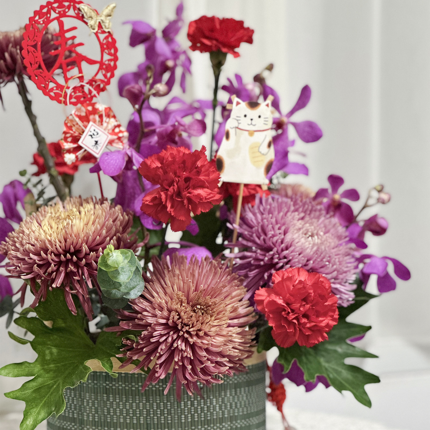 2.避免置放於陽光直射處、花材易枯萎。