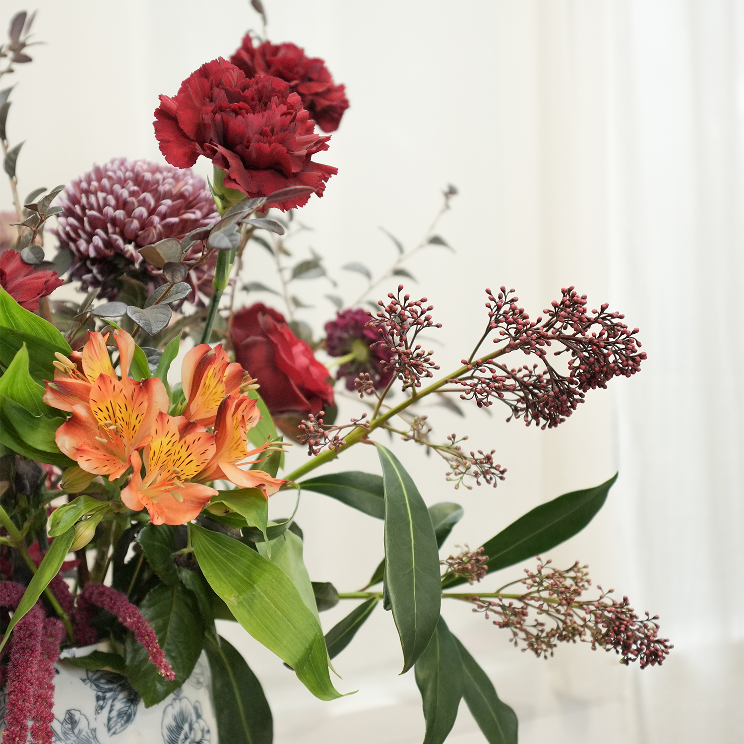 訂購 商品詳細資訊: 尺寸→ 約20x15cm(長寬) x 約30cm(高) 成分→ 新鮮花材、新鮮葉材、提籃、吸水海綿 虎頭蘭、綠石竹、松蟲、玫瑰、富貴菊、陸蓮 商品備註: 1.實際顏色已實品為主。 2.避免置放於陽光直射處、花材易枯萎。 3.作品 說明:花材會依季節性變動,或是花材品質欠佳,若遇臨時狀況發生, 請允許花藝設計師以其他色系或相同的花材做調整,或電洽設計師討論。