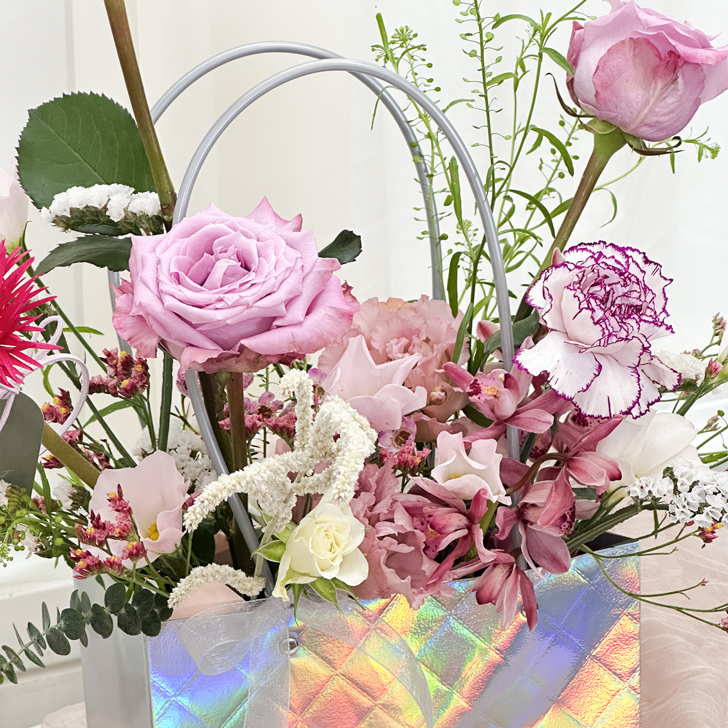 成分→ 新鮮花材、新鮮葉材、皮革提籃、吸水海綿