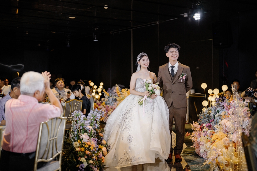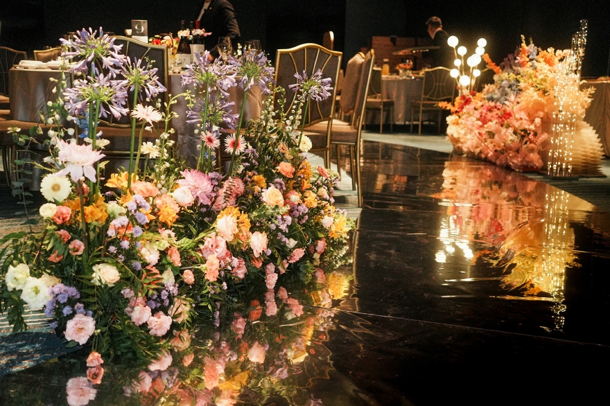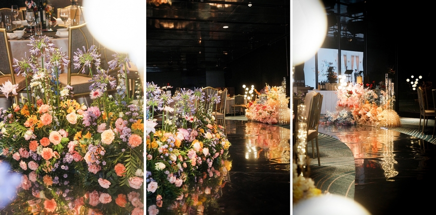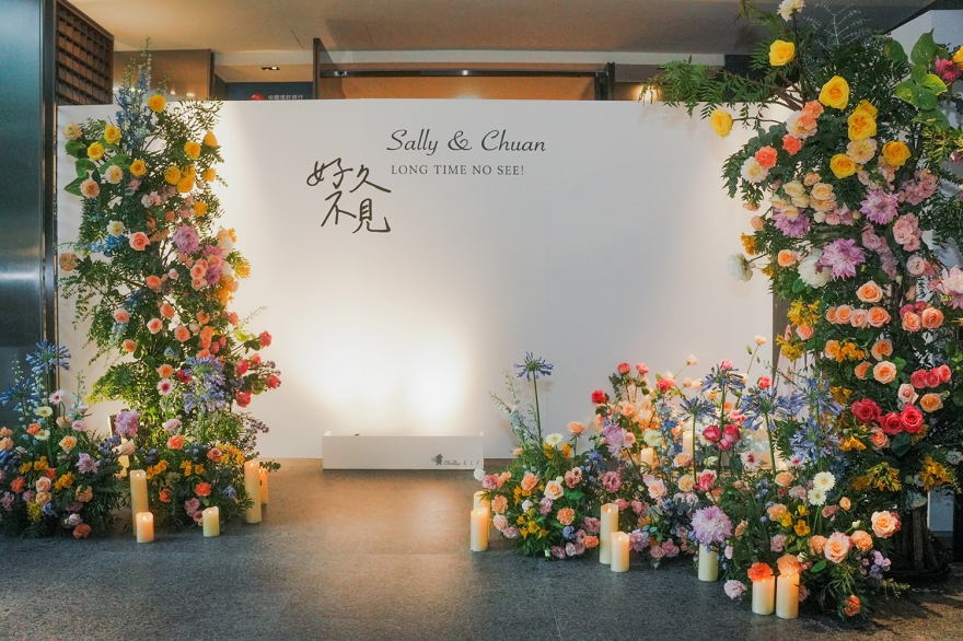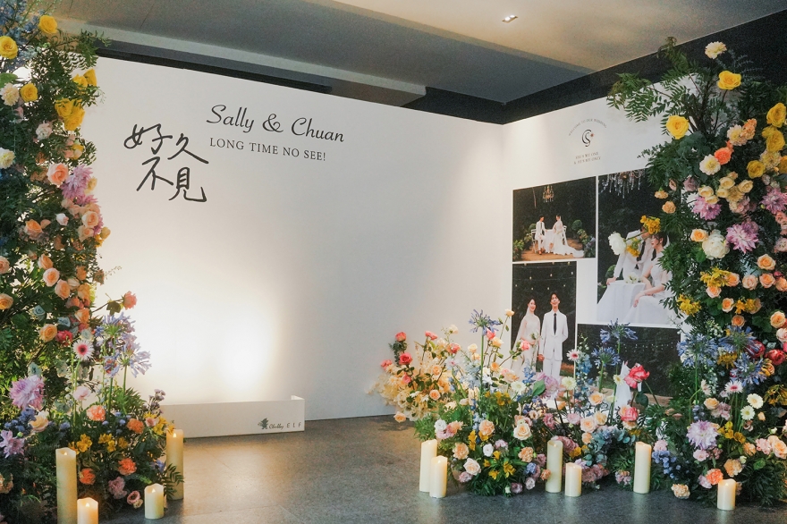 以多巴胺色系打造證婚佈置:亮黃、珊瑚粉、湖水綠與橘紅交織,讓幸福感直擊心底