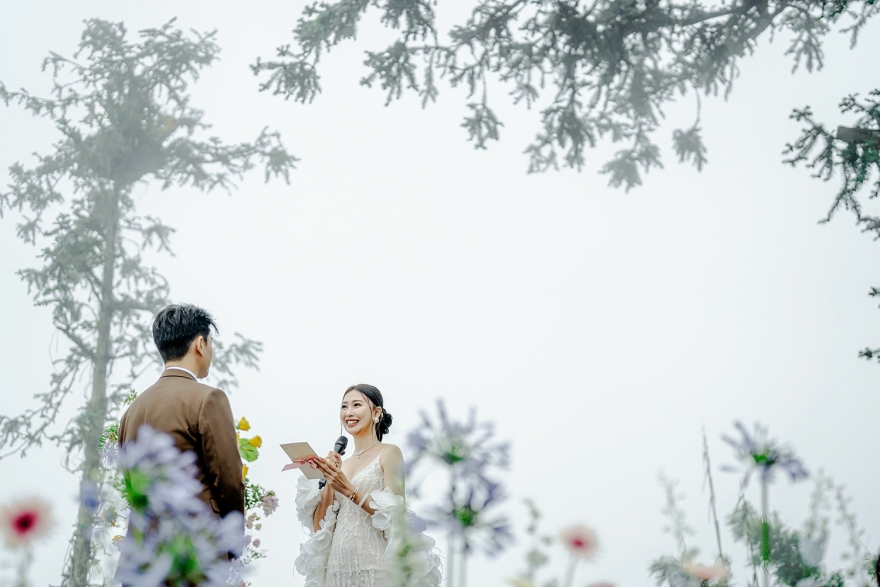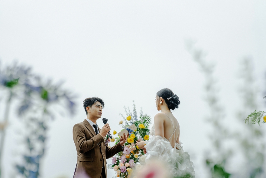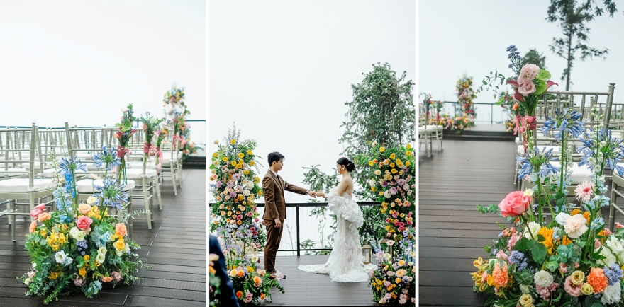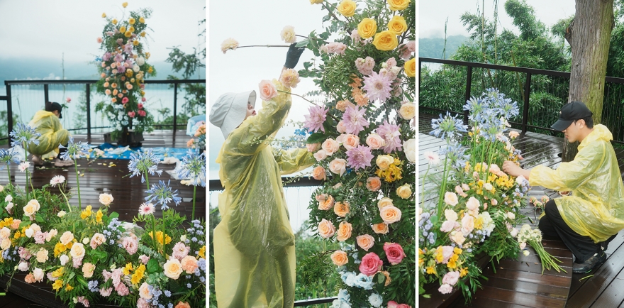 新人的誓言隨風飄散,與湖光、山色、色彩共鳴,溫柔又幸福